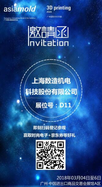 查看更多上海數(shù)造將亮相第十二屆“廣州國際模具展覽會(Asiamold)”,上海數(shù)造的發(fā)展道路離不開您的支持與肯定。2018年3月4日—6日,廣州·中國進(jìn)出口商品交易會展館A區(qū)D11號展位,恭候您的到來。