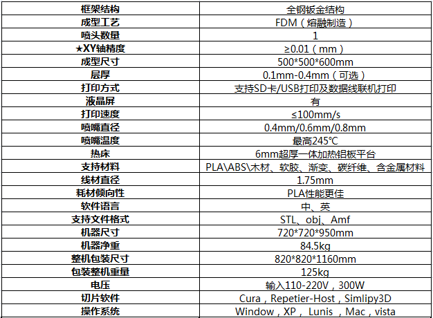 3DDP-500性能特點